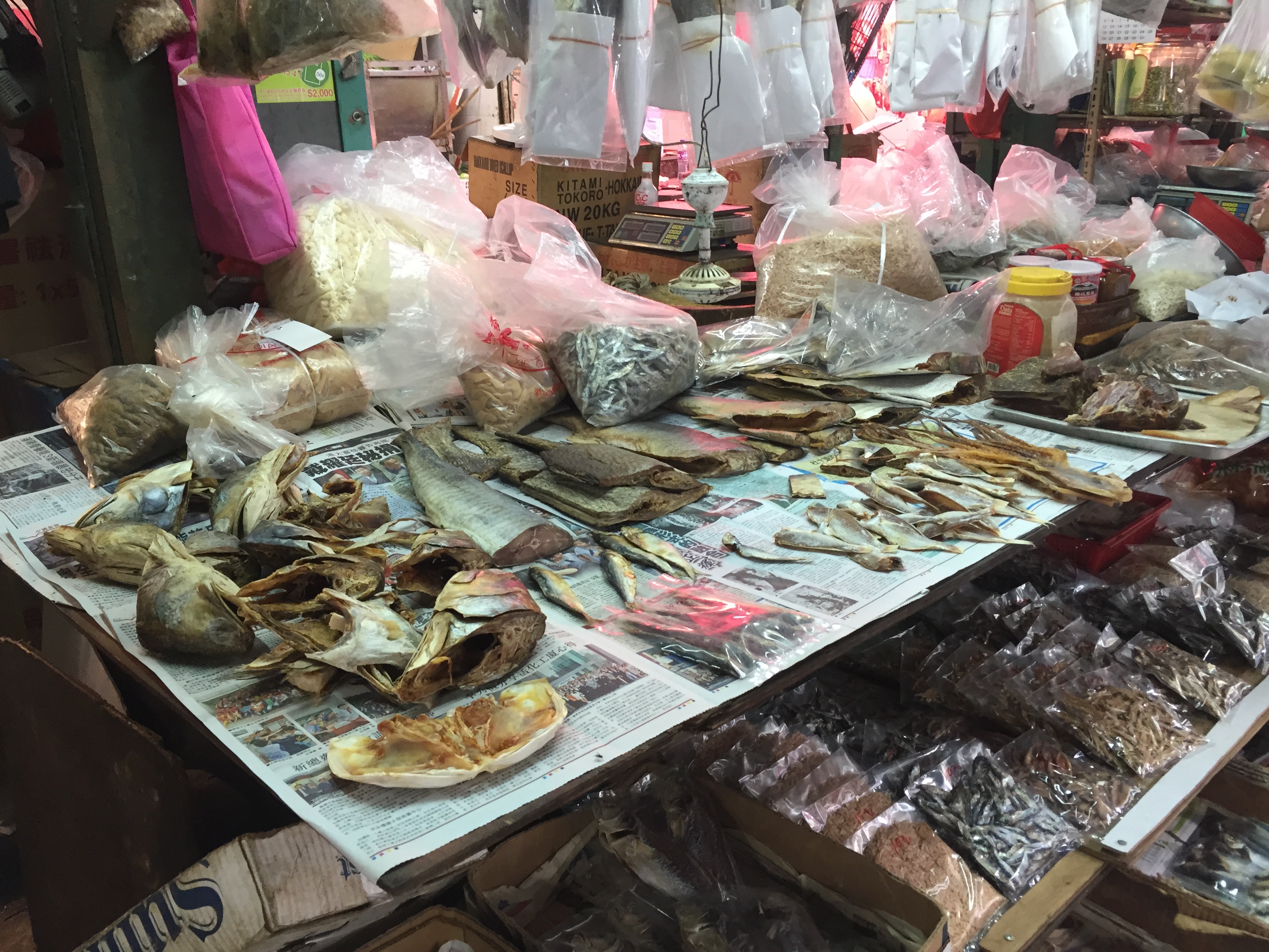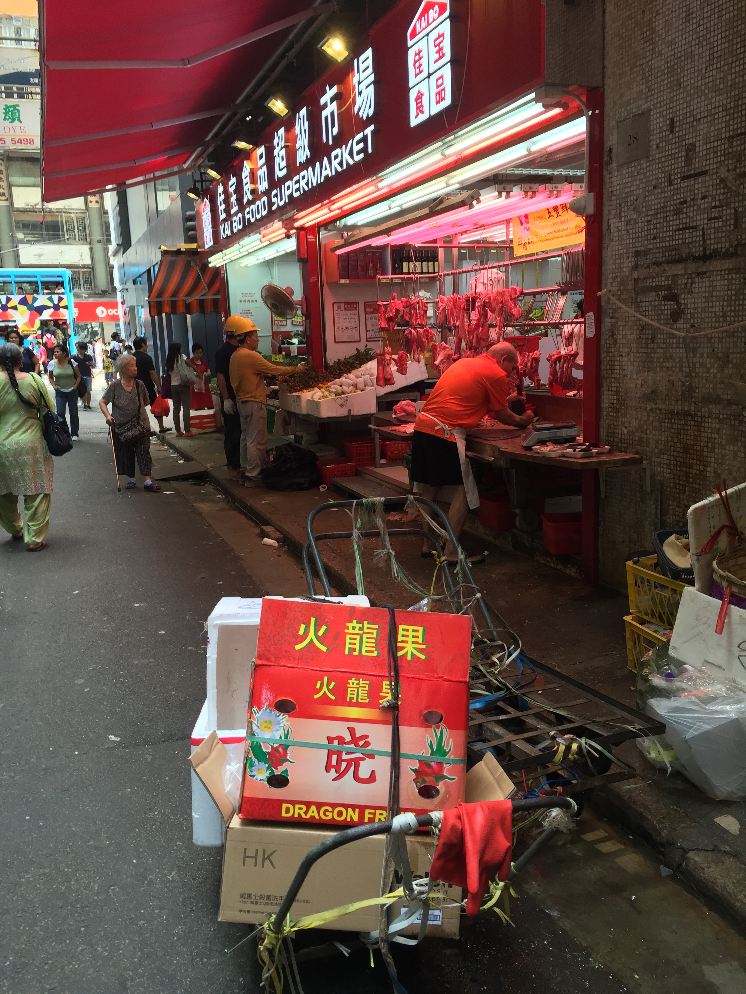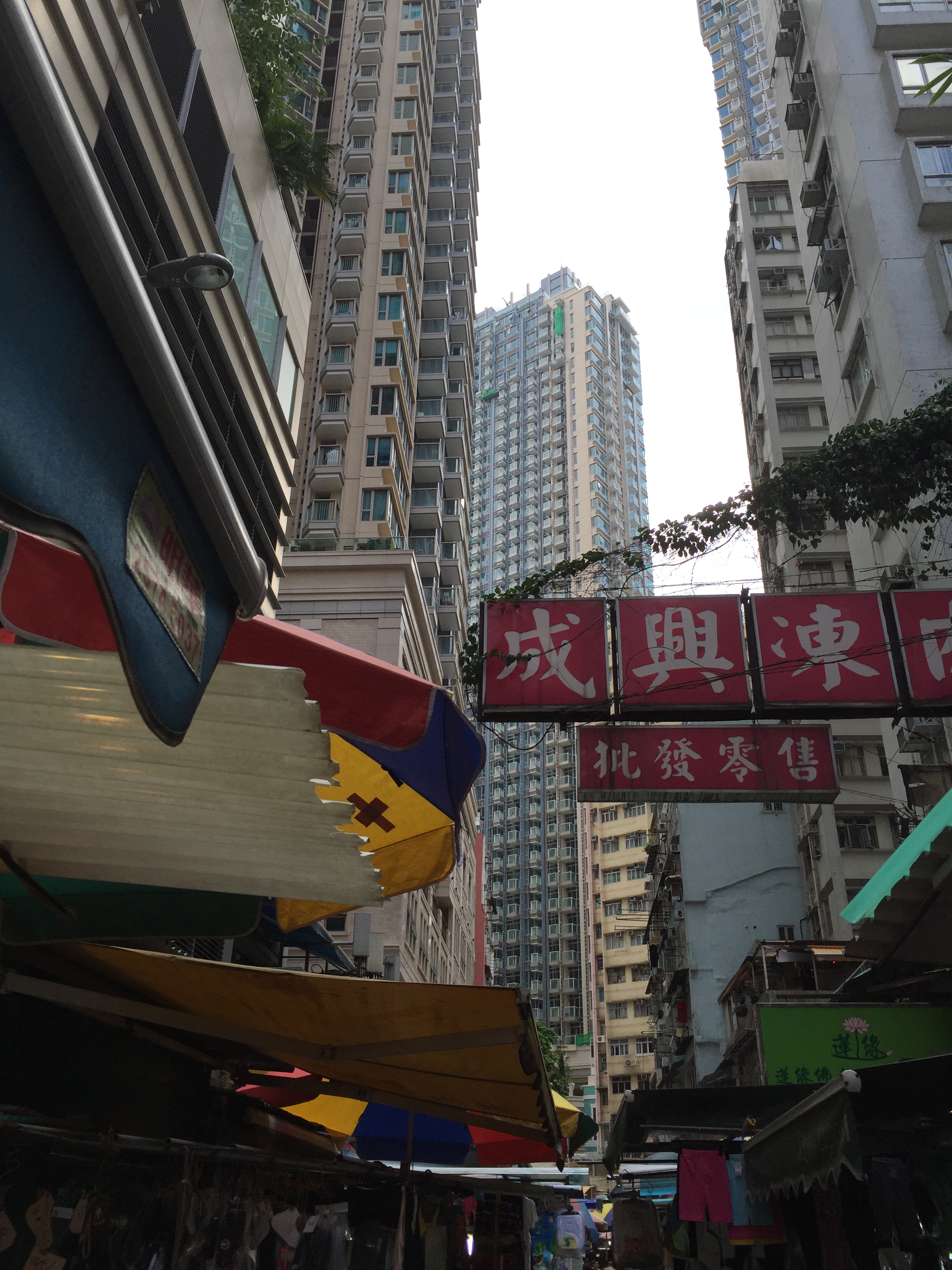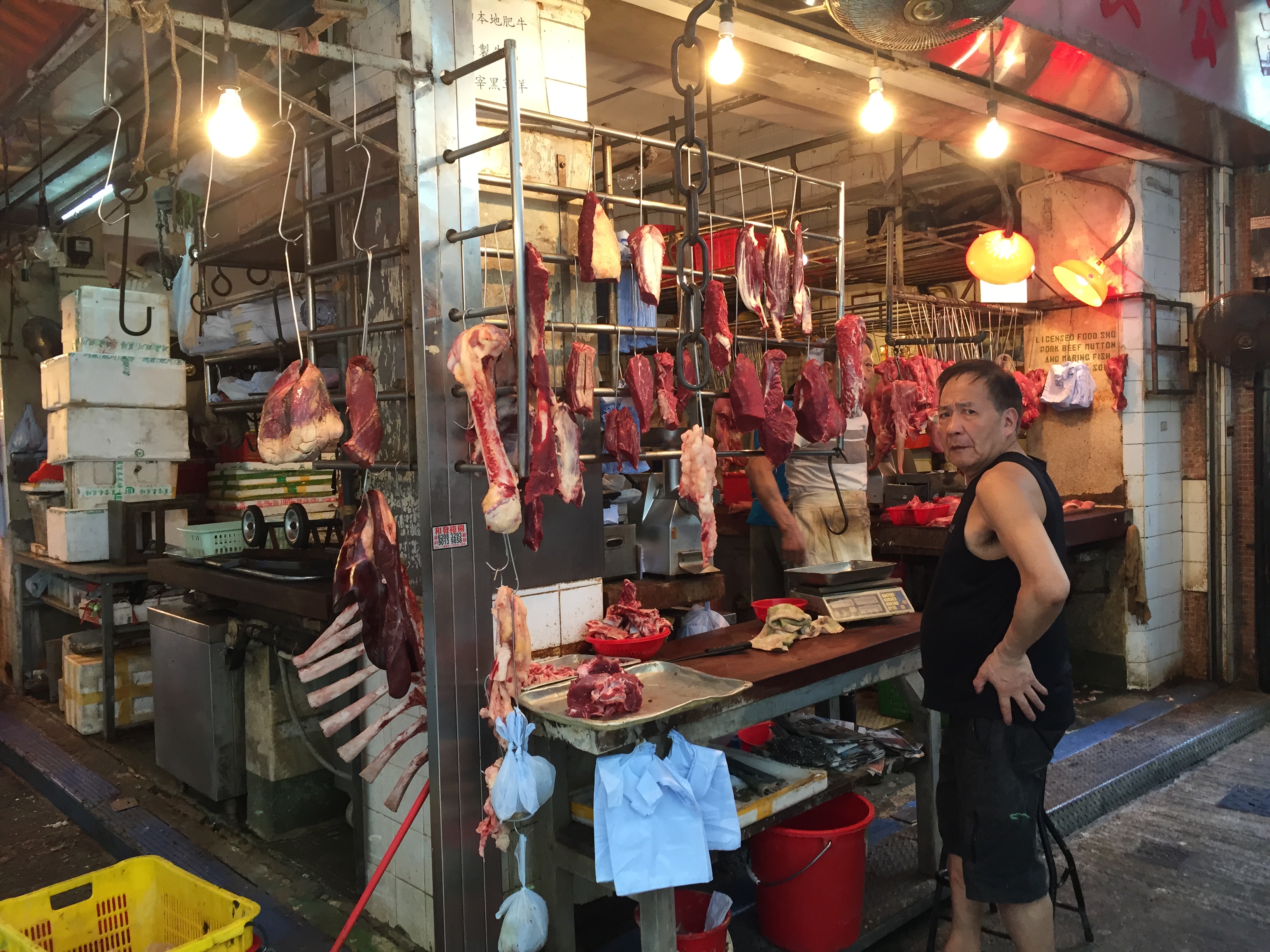 Starting the market experience on Tai Yeun Street.3 speed battery operated fans (level 3 is always necessary). Everyone carries them around when they walk outside and hold them up to their face / neck for relief from the heat.Most stalls and shops specialize in one thing. This one is for kid’s toys / inflatables.The streets are covered with tarps and umbrellas. Being tucked in between so many tall buildings it’s shady and you can barely see the sky.Typical little restaurant on the corner.The suspended red lights are very “market-iconic”; you see them in most of the shops, but not really anywhere else in Hong Kong.This is the stinkiest corner. The butcher shop smells so metallic and bloody, and the fish shop across the street smells so fishy, especially in this heat. I gag when I walk by.These ladies eat their little packed lunch while tending their stall of dried goods. I like their metal containersOh boy, this butcher shop is something else. I don’t understand how the meat can sit out in the open air like this when it’s so hot.All the dried fish products you could ever need.I love the fruit stands. Everything looks so colourful and bright.These guys are obviously hot – no shirts under their aprons at this stall. You can see the typical chopping block under his knife – they are worn down to a concave shape.One of the many market alleyways.Basically the Hong Kong version of a dollar store. Anything and everything is sold here – lots of plastic junk.There are a couple restaurants along the street too. This one sells roast duck, chicken etc.This lady was purchasing half a duck to take home (I think).Not the type of Supermarket I’m used to!I also like the veggie shops. Everything looks really fresh.Another fruit stand, basically an alleyway covered in tarps.Seafood shop with lots of live offerings.Difficult to see in this photo, but the bins under the rack were filled with live eels.Egg stall (again, not sure how these can sit out in the heat all day?) or what those dark things are in the photo foreground. Typical shop keeper, playing a game on his cell phone.Stalls, signs and very little sky.Traditional Chinese stuff (?) stall. Lots of little trinkets here!Cardboard recycling station.I made my exit from the market down Spring Garden Lane.