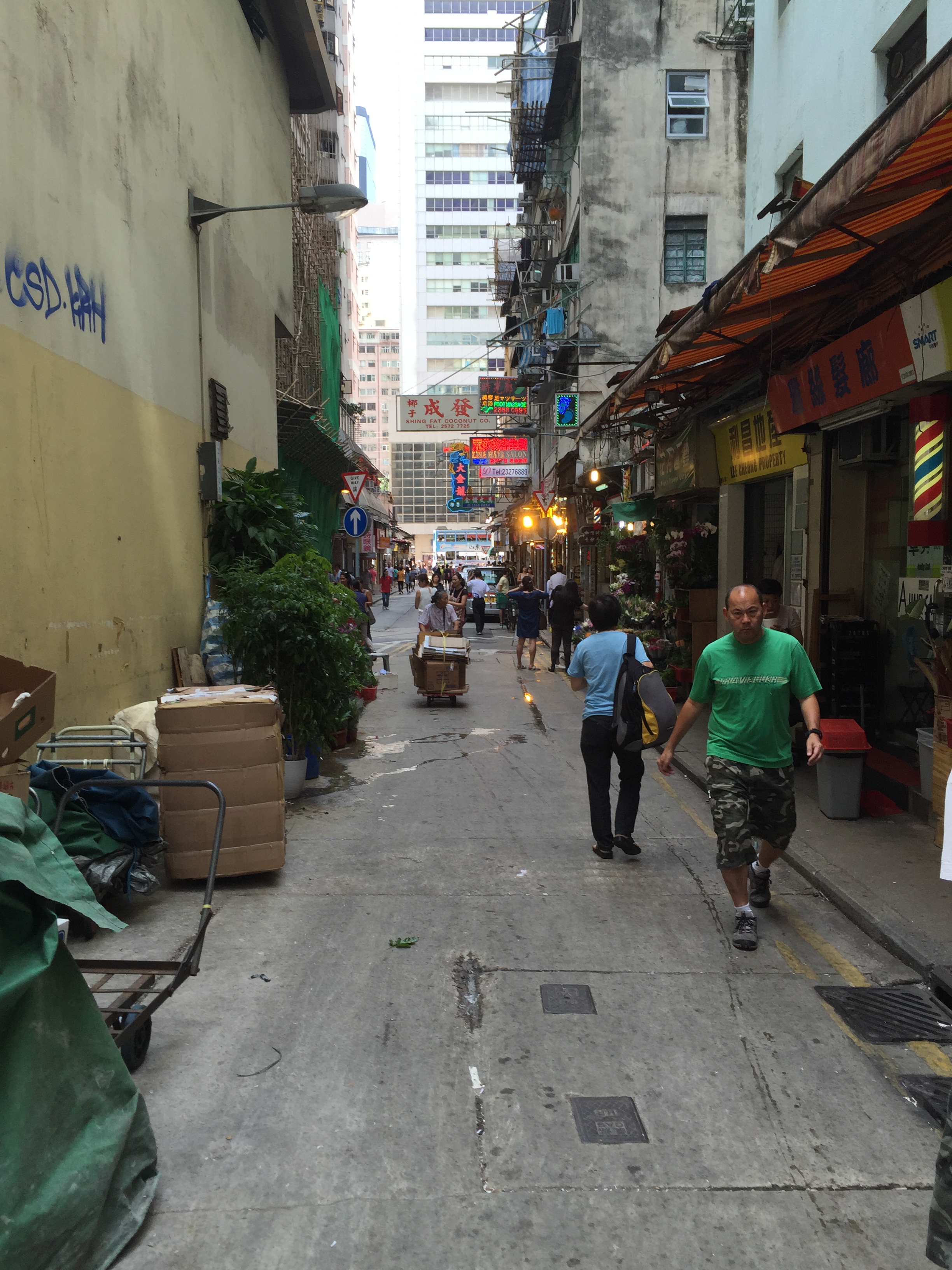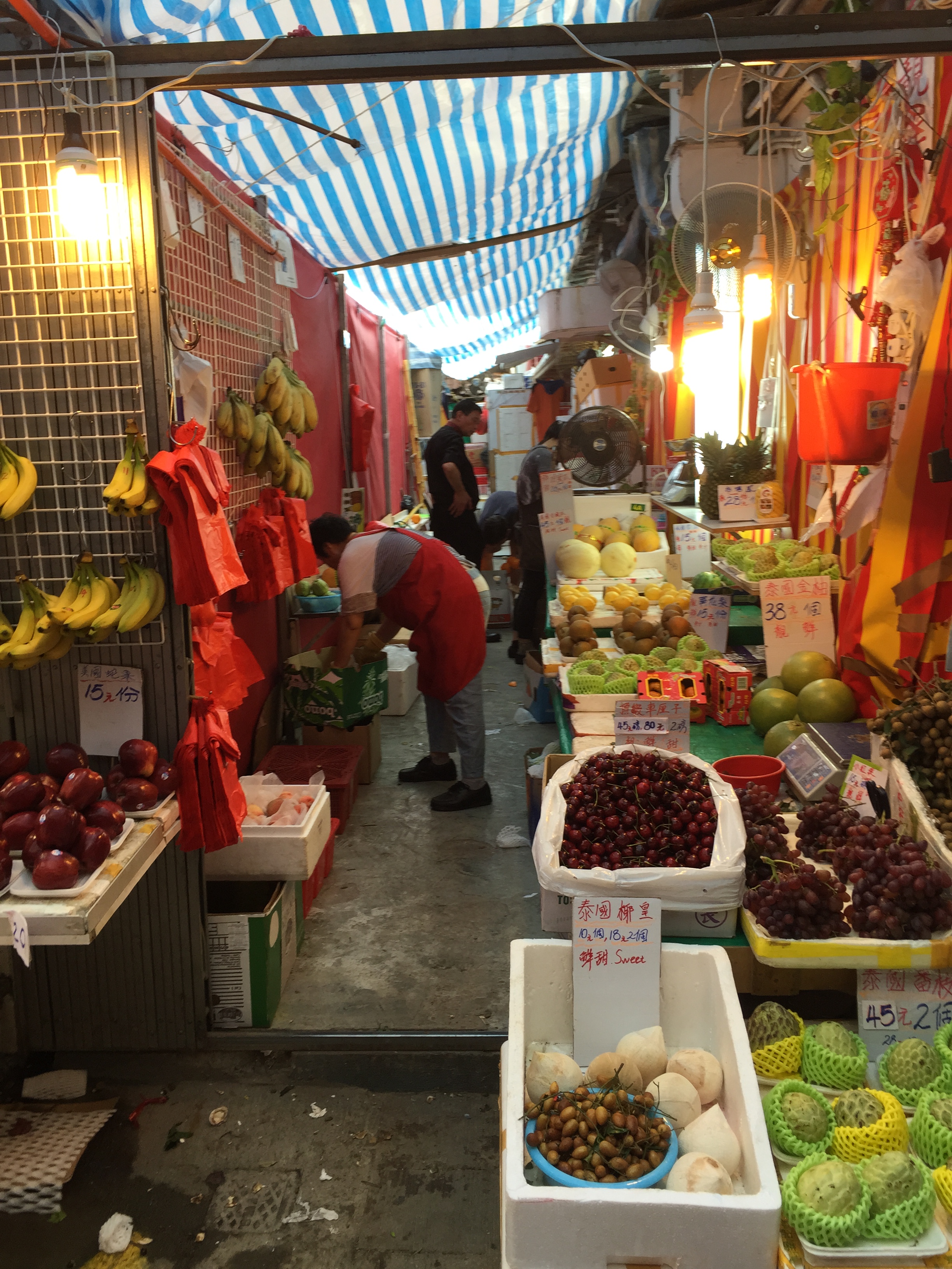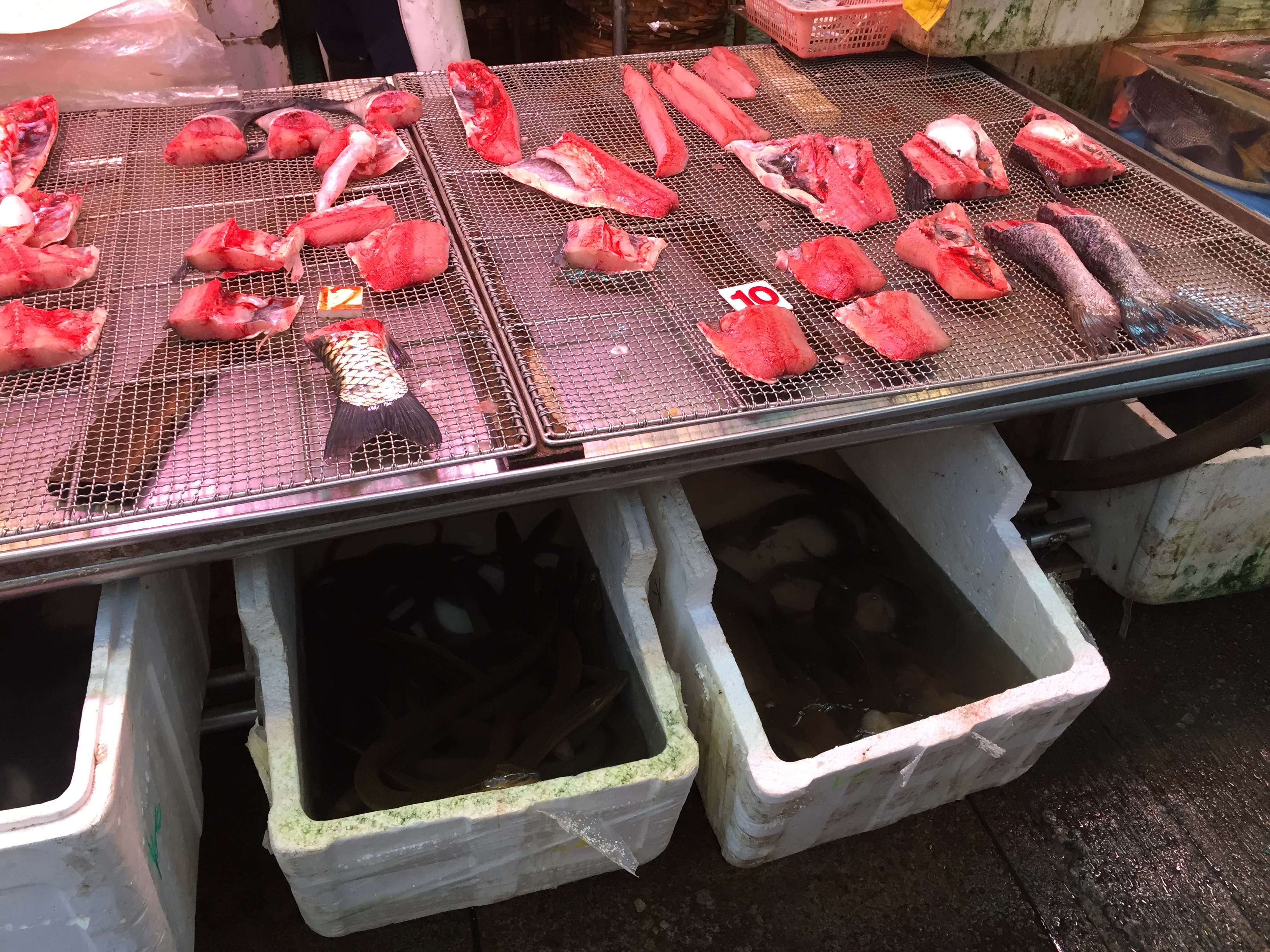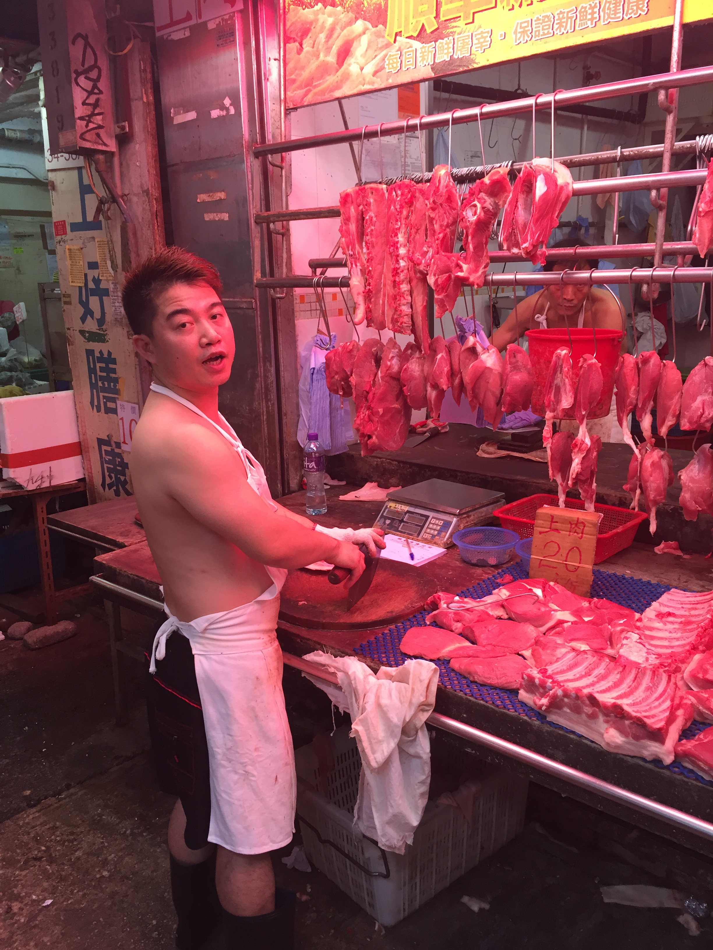 Starting the market experience on Tai Yeun Street.3 speed battery operated fans (level 3 is always necessary). Everyone carries them around when they walk outside and hold them up to their face / neck for relief from the heat.Most stalls and shops specialize in one thing. This one is for kid’s toys / inflatables.The streets are covered with tarps and umbrellas. Being tucked in between so many tall buildings it’s shady and you can barely see the sky.Typical little restaurant on the corner.The suspended red lights are very “market-iconic”; you see them in most of the shops, but not really anywhere else in Hong Kong.This is the stinkiest corner. The butcher shop smells so metallic and bloody, and the fish shop across the street smells so fishy, especially in this heat. I gag when I walk by.These ladies eat their little packed lunch while tending their stall of dried goods. I like their metal containersOh boy, this butcher shop is something else. I don’t understand how the meat can sit out in the open air like this when it’s so hot.All the dried fish products you could ever need.I love the fruit stands. Everything looks so colourful and bright.These guys are obviously hot – no shirts under their aprons at this stall. You can see the typical chopping block under his knife – they are worn down to a concave shape.One of the many market alleyways.Basically the Hong Kong version of a dollar store. Anything and everything is sold here – lots of plastic junk.There are a couple restaurants along the street too. This one sells roast duck, chicken etc.This lady was purchasing half a duck to take home (I think).Not the type of Supermarket I’m used to!I also like the veggie shops. Everything looks really fresh.Another fruit stand, basically an alleyway covered in tarps.Seafood shop with lots of live offerings.Difficult to see in this photo, but the bins under the rack were filled with live eels.Egg stall (again, not sure how these can sit out in the heat all day?) or what those dark things are in the photo foreground. Typical shop keeper, playing a game on his cell phone.Stalls, signs and very little sky.Traditional Chinese stuff (?) stall. Lots of little trinkets here!Cardboard recycling station.I made my exit from the market down Spring Garden Lane.