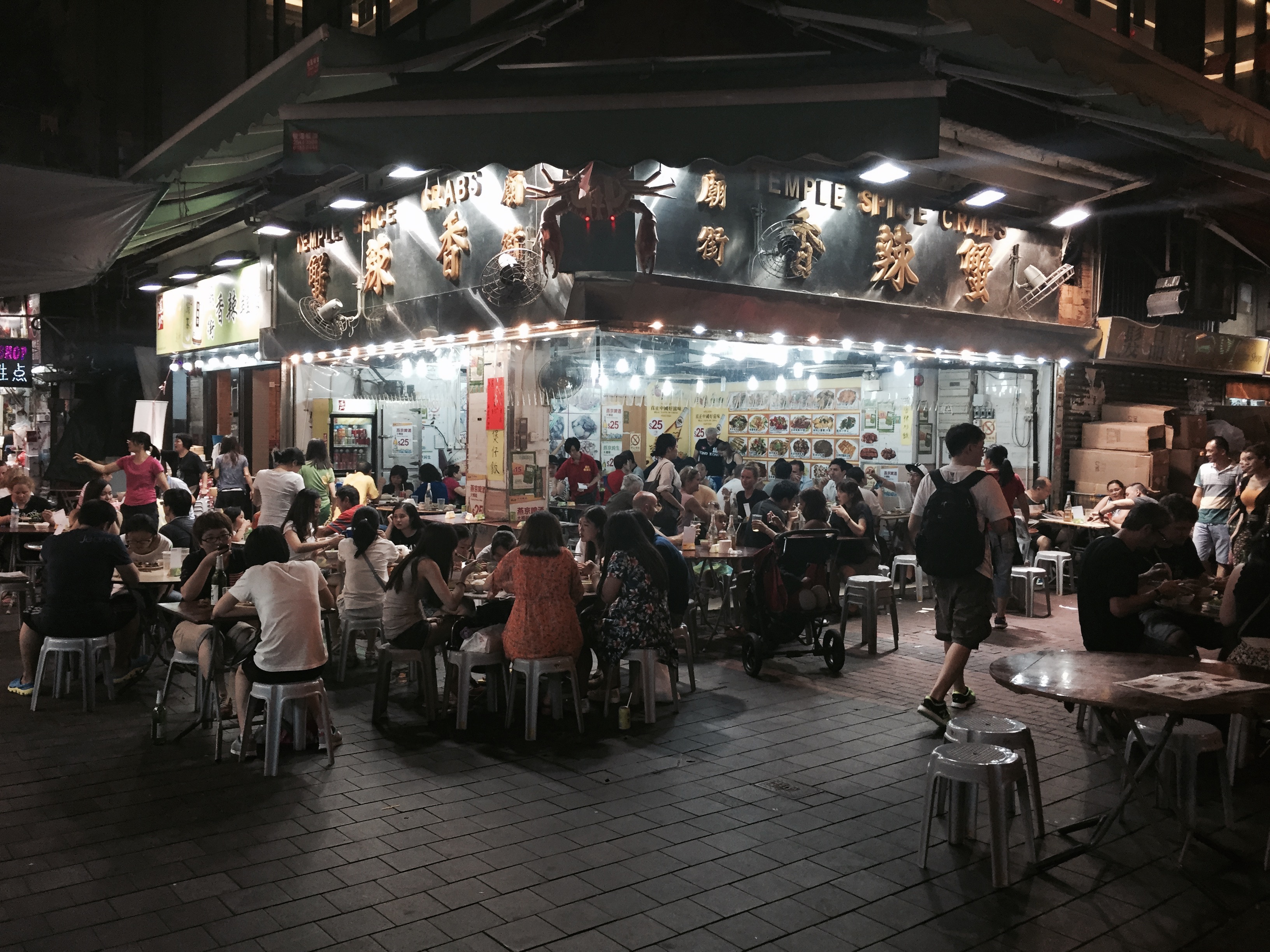 After so much walking and exploring (good thing we wore comfy running shoes!) we were ready for a beer. We liked the look of Temple Street Spicy Crab so we sat down outside. It was so fun to people-watch as everyone walked by and also watch the food arriving to tables around us.
